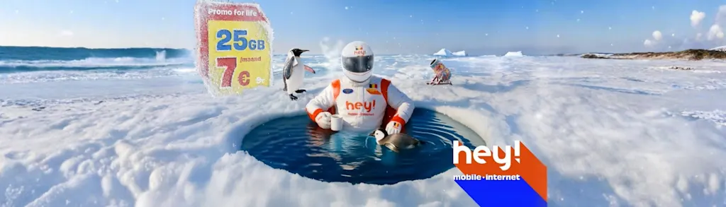 L’opérateur télécom hey! s’approprie cette position publicitaire unique avec une promotion qui réchauffe littéralement le cœur des téléspectateurs. Ce jingle a été développé en interne par nos motion designers, aussi bien pour VTM au Nord que pour RTL tvi au Sud.
