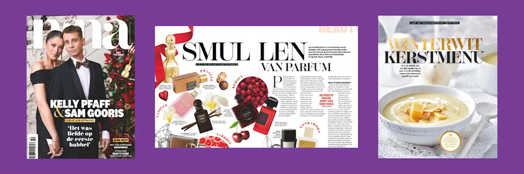 December is de maand van magie en inspiratie en dat voel je in het magazine Nina! Drie speciale feesteditie-nummers boordevol heerlijke recepten, schitterende decoratie-ideeën en de mooiste feestoutfits. Laat je inspireren en laat je campagnes stralen tijdens de feestdagen.